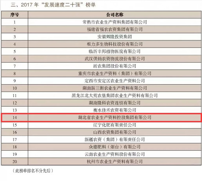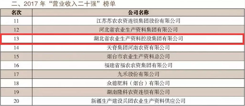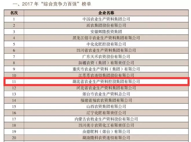 2017年,在產(chǎn)能需求不平衡、優(yōu)惠政策變動、產(chǎn)品價格低迷、運營成本上漲、同質(zhì)化競爭嚴重的市場環(huán)境下,湖北農(nóng)資控股集團主動適應市場變化、加快推進轉(zhuǎn)型升級,實現(xiàn)了公司穩(wěn)健經(jīng)營。此次榜單的發(fā)布,旨在引導和激勵中國農(nóng)資流通企業(yè)做優(yōu)做強,推動企業(yè)優(yōu)化和協(xié)調(diào)發(fā)展。