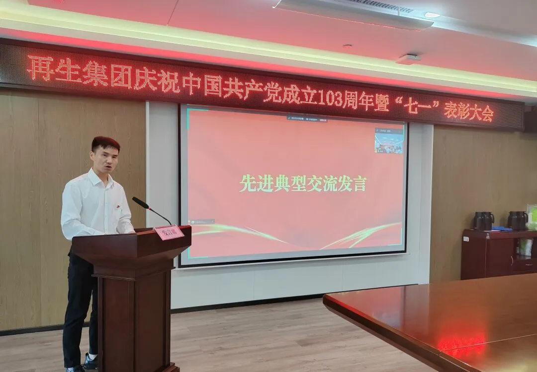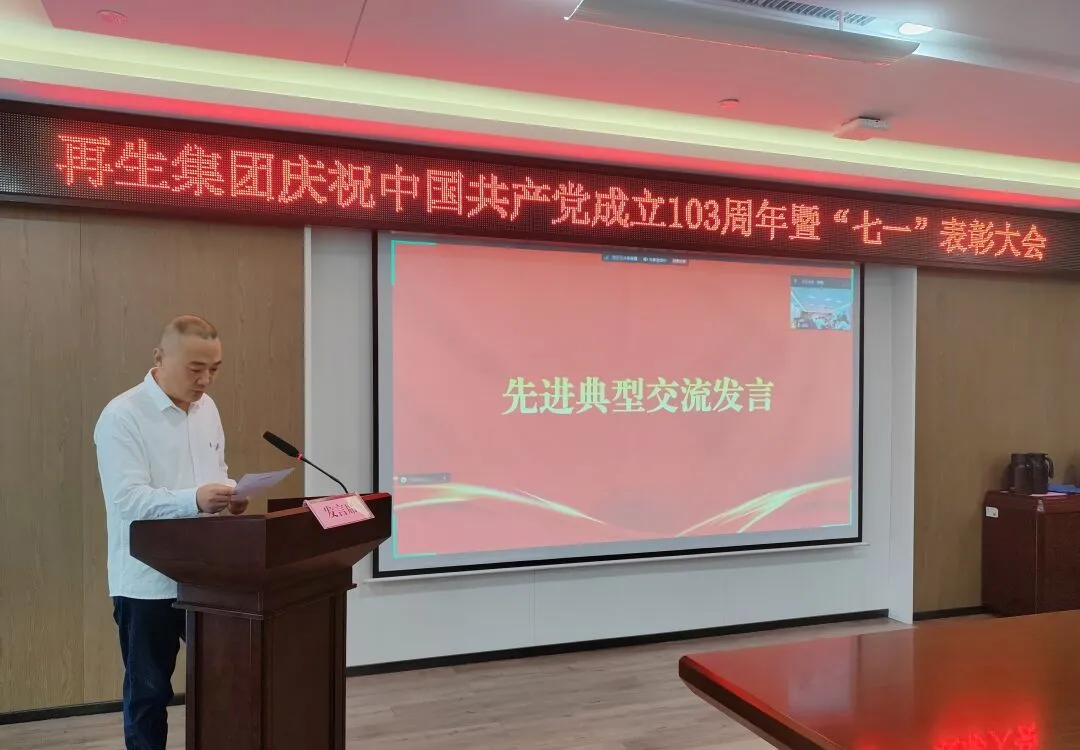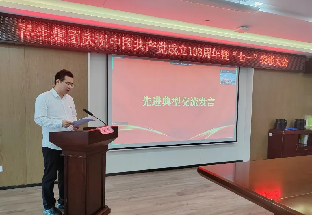 7月1日上午8:40,在嘹亮的《義勇軍進行曲》歌聲中拉開了再生集團慶祝中國共產(chǎn)黨成立103周年暨“七一”表彰大會的序幕,此次大會設(shè)本部主會場和園區(qū)分會場。會議由集團公司黨總支書記、董事長王建強同志主持,全體黨員和入黨積極分子近40人參加。