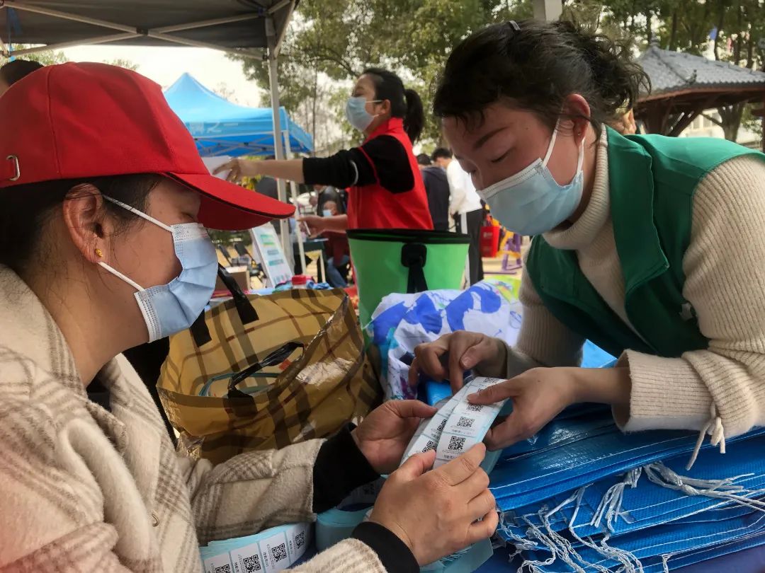 在綠色便民集市上,垃圾分類宣導(dǎo)員們率先向小區(qū)居民們宣講了“兩袋一新”的垃圾分類方法,幫居民辦理碳賬號,將家中收集閑置物品帶到現(xiàn)場進行兌換,并將等值碳幣捐贈給認領(lǐng)的幫扶家庭?;顒蝇F(xiàn)場設(shè)置了形式多樣的互動環(huán)節(jié),垃圾分類小游戲、工作坊環(huán)保達人手工展示、眼科口腔便民服務(wù)等,得到居民一致好評。