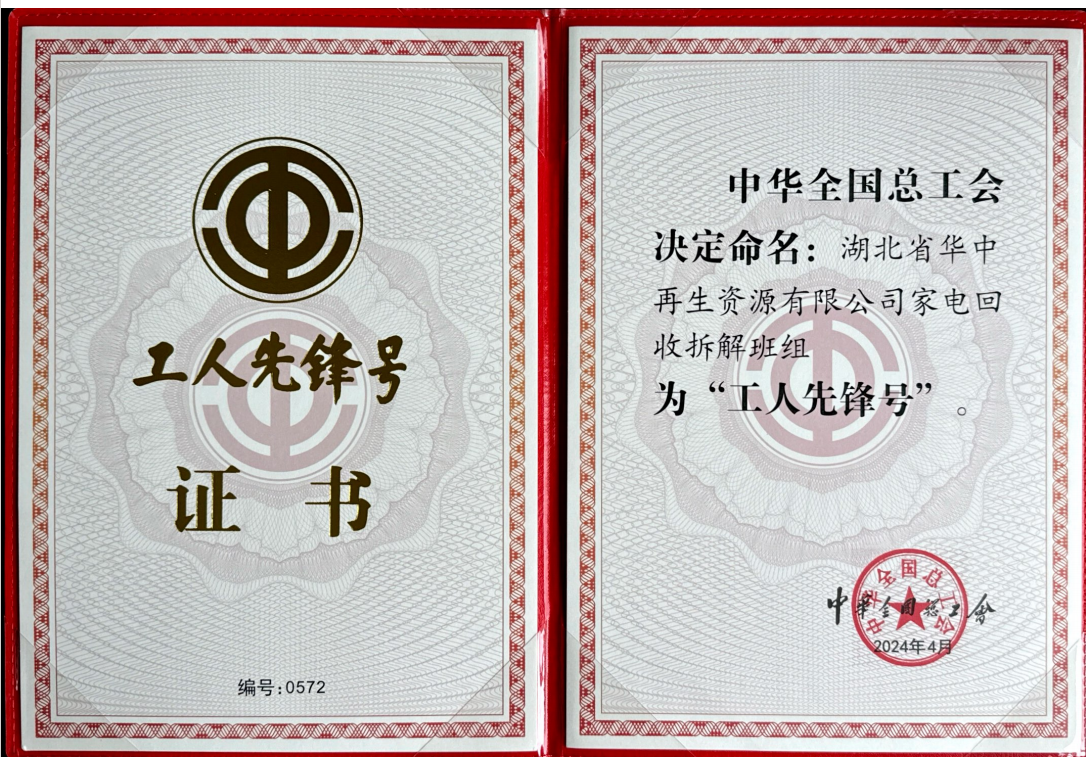 4月28日,中華全國總工會(huì)發(fā)布了《關(guān)于表彰2024年全國五一勞動(dòng)獎(jiǎng)和全國工人先鋒號(hào)的決定》,此次中華全國總工會(huì)共授予1034個(gè)集體全國工人先鋒號(hào),我司旗下湖北省華中再生資源有限公司家電回收拆解班組榮獲殊榮,是全國供銷系統(tǒng)唯一一家受到表彰的單位。